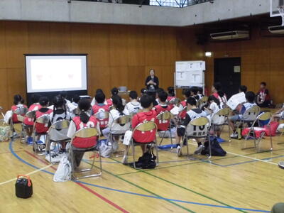 外は雨が降ったりやんだりのあいにくの天気でしたが、体育館内は子どもたちの熱気あふれる中、2日目のプログラムが無事終了しました。