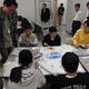 まず5つのグループに分かれ「英語に対するイメージは?」「英語を学ぶとよいことって?」について、グループ内で意見を交換しました。「英語が話せるとかっこいい」「外国の人と話ができる」など、様々な意見が活発に組み交わされました。