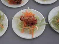 休憩をはさみ、本日のメインでもある『海外の味を味わう』時間。ベトナムやミャンマーでよく食べられる料理(生春巻き、タンドリーチキン、ゼリー)を試食しました。