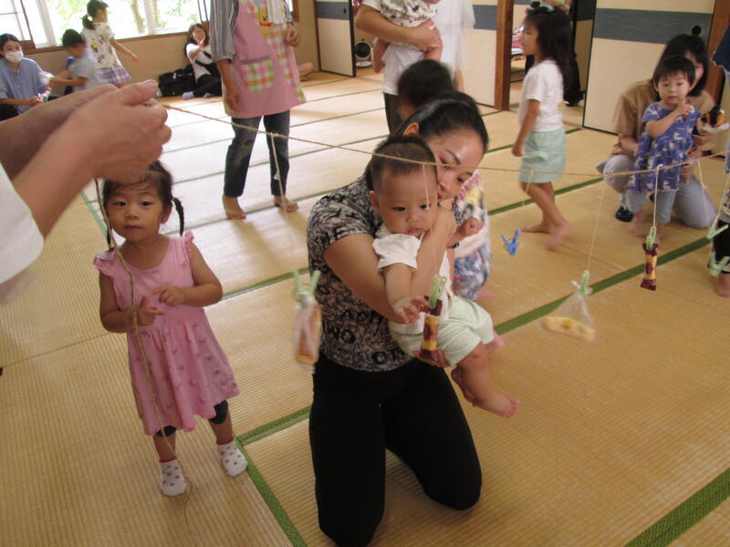 小さい子にはママがお手伝い。自分で取れるとうれしいね