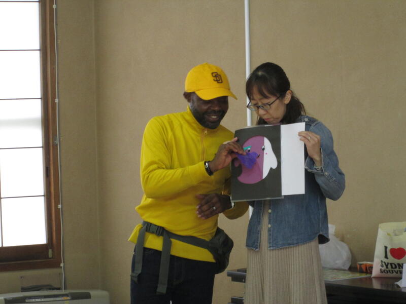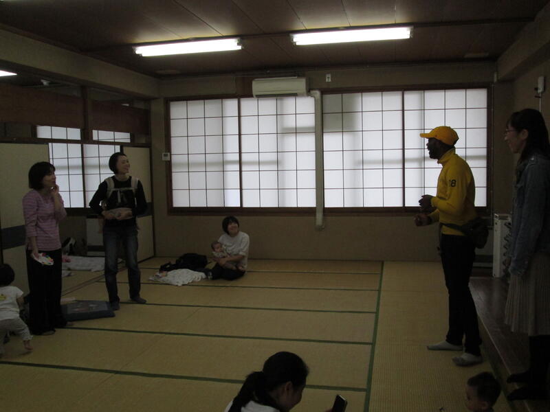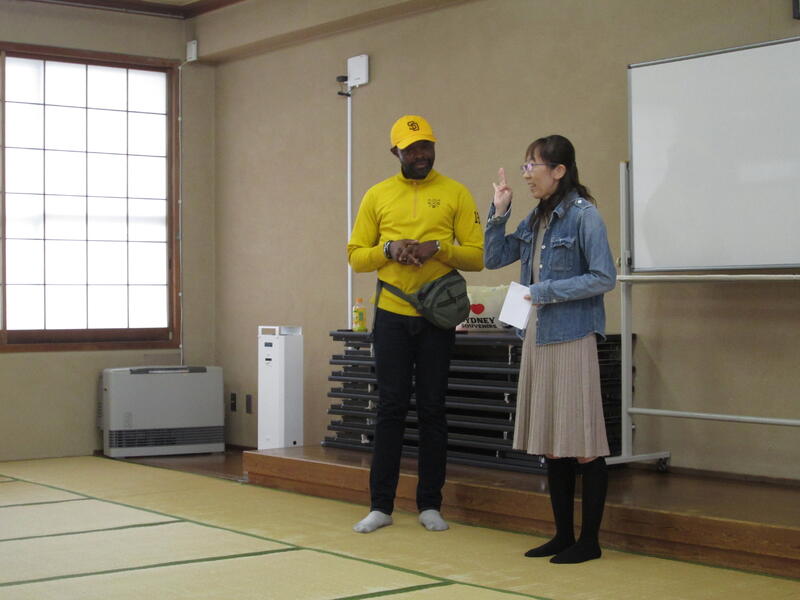 講師の鳩間先生の自己紹介、そしてネイティブ英語で会話をしてくださるカメルーン出身のご主人も一緒にこどもたちを楽しませてくれました