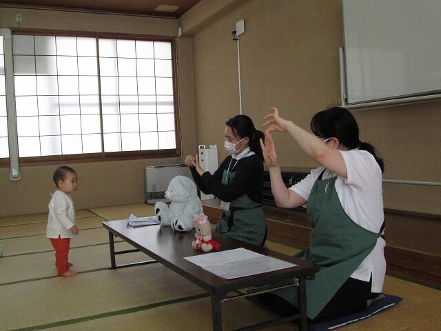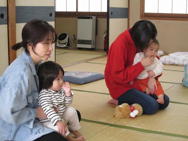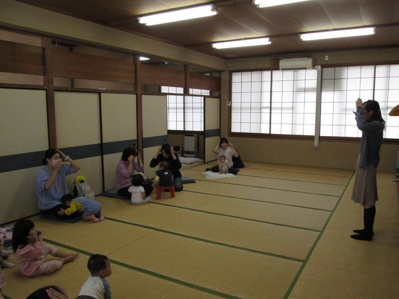 別の童歌では、ぬいぐるみのお手本に合わせてママのお膝でお馬さんごっここどもたちのかわいい笑顔がみれました