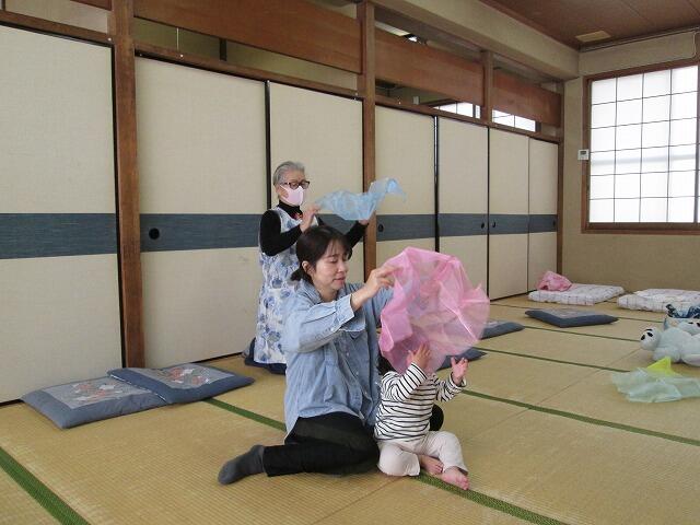 お顔が見えて安心できるやわらかい布「シフォン」まるめたり、飛ばしたり、ふんわり・・・こどもたちもお気に入りです