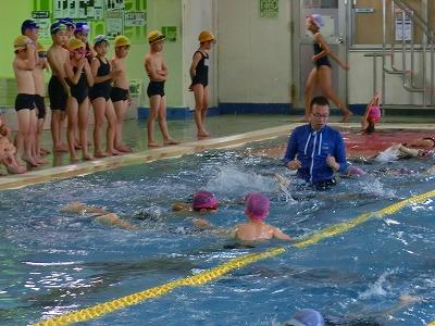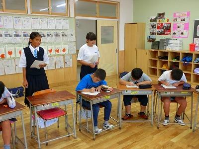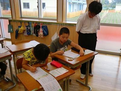 1~6年生のサマースクール1日目です。前半は、スイミングスクールに移動し、水泳の練習をしました。後半は、1学期の復習を中心に学習時間です。後期課程の生徒たちが、「赤ペン先生」として、各学年の学習ボランティアをしてくれました。