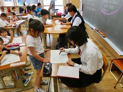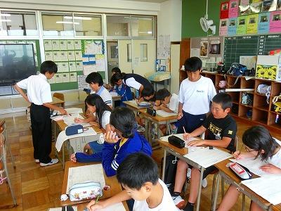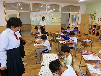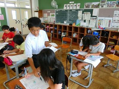 1~6年生のサマースクール1日目です。前半は、スイミングスクールに移動し、水泳の練習をしました。後半は、1学期の復習を中心に学習時間です。後期課程の生徒たちが、「赤ペン先生」として、各学年の学習ボランティアをしてくれました。