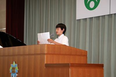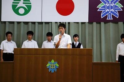 集会の最後に、今週金曜日に市内スピーチコンテストに出場する選手が、これまでの練習の成果を披露しました。自分の考えを英語で伝えることができるように、ジェスチャーも交え表現していました。当日、良い成果を収めるよう祈っています。