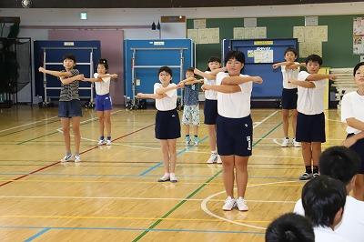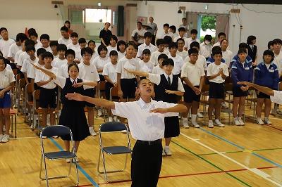 5~9年生が期末集会を行いました。集会では、部活や委員会のまとめと反省、ラジオ体操の発表、生徒会長の話がありました。