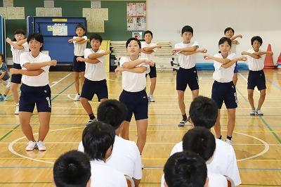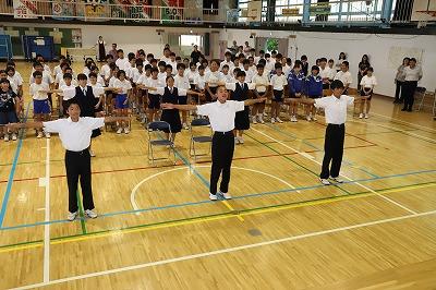 本校では、小学生の選抜チームを編成し、全国優勝を目指して練習を積み重ねてきました。今日は、集会時に”そのラジオ体操キッズ”が集まりその成果を披露しました。