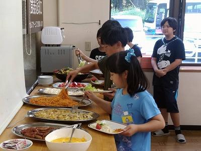 朝はラジオ体操からスタートしました。本日の朝食は洋食です。子供たちはしっかり食べ、みんな元気です。
