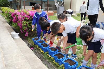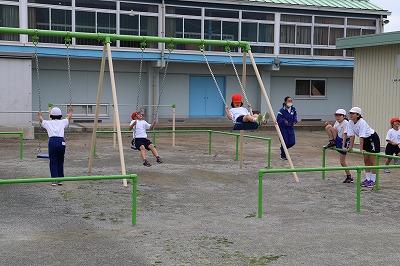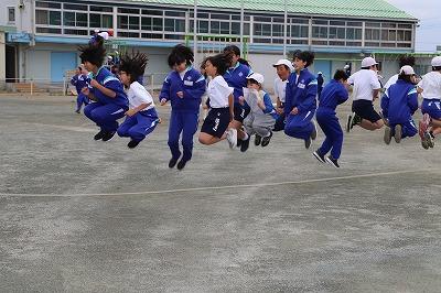 1年生~9年生まで全校の児童生徒が3・4校時に集まり練習をしました。3時間目は入場について、4時間目は競技を行いました。