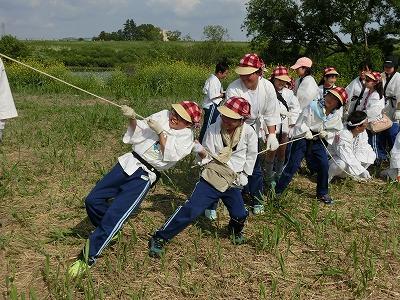 よく晴れた空のもと、大運動会の練習を行いました。競技種目の練習を集中して行いました。写真はソーランと組み体操。当日への期待が高まる練習でした。