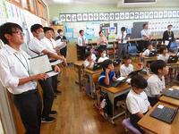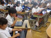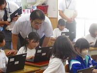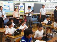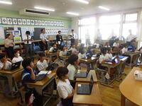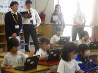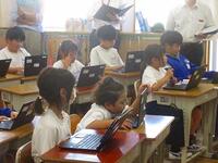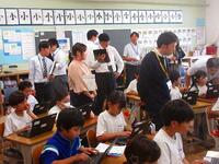 今日は、午後に本校を会場に春日部市教育研究会情報部会の研究授業が行われました。市内の小中学校の情報教育担当の先生方が集まりました。本校3年生の国語の授業「修飾語を使って書こう」を題材にタブレットを利用した授業展開でした。児童のみなさんは、修飾語を使ってわかりやすい文を書くことに集中できました。また、色を分けて視覚的にわかりやすいように工夫をしていました。