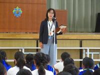 朝の時間に「新児童・生徒会本部役員任命式及び引継ぎ式」が体育館で行われました。新児童・生徒会本部役員一人ひとりに校長先生から任命書が渡されました。旧児童・生徒会本部役員のみなさん、江戸川小中学校のリーダーとして活躍してくれました。ありがとうございました。新児童・生徒会本部役員のみなさん、新しい江戸川小中学校の顔として、いろいろな場面でリーダーシップを発揮して頑張ってください。児童生徒みんなで、、よりよいものを築き上げていきましょう。