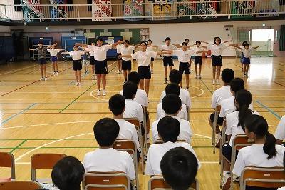 本校では、小学生の選抜チームを編成し、全国優勝を目指して練習を積み重ねてきました。今日は、集会時に”そのラジオ体操キッズ”が集まりその成果を披露しました。