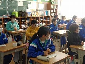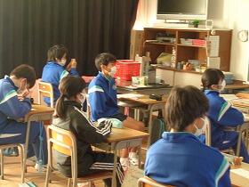 本日、5~9年生の期末集会を行いました。代表児童生徒のみ体育館に集まり、そのほかの児童生徒は教室で、リモートで参加しました。各専門委員長、各部活動の部長、そして、5・6年生の代表児童から2学期の活動報告及び3学期の目標を話してもらいました。各専門委員長の3学期の目標は、「3学期からは8年生が後輩を引っ張っていってほしい。」と話がありました。各部活動の部長の3学期の目標は、「あいさつとチームワークを大切にしていきたい。冬休み、お互いに協力し合って高めていきたい。練習でできないことは試合でもできない。」という話がありました。5・6年生の代表児童の3学期の目標は、「2学期できなかったことを再チャレンジしていきたい。前期課程修了式に向けて頑張っていきたい。」という話がありました。