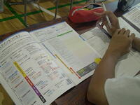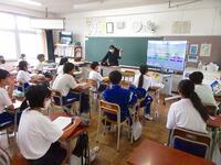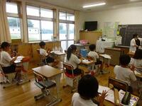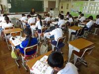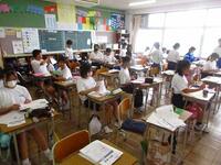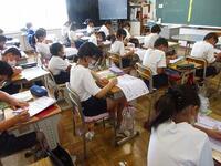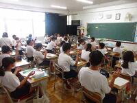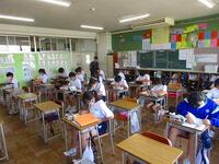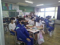 朝から曇りで時々雨が降っています。また、ジメジメする感じで気温は高くありませんが、湿気が高く蒸し暑さを感じる感じです。1時間目の授業を見て回ると、後期課程の授業では明日から行われる期末テストのための勉強をしているクラスがあり、真剣に取り組んでいました。音楽の授業では、ある曲の季節やメロディーのイメージを考え、発表していました。6年生社会では、古墳やはにわなど写真から導入が始まり、そこに書かれていることは何の意味があるのか考えることをしていました。それぞれの授業では、目標やねらいを提示し、その達成に向けて思考・活動が始まります。