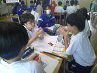 体育委員と1、2年生で行い、1、2年生の勝利が多く、大変喜んでいました。途中、担当の教員が参戦し、一緒に汗を流していました。1、2年生のみなさんは、笑顔多く、楽しく取り組めました。体育委員のみなさん、終了後は大変疲れた様子でした。みんなで楽しめた企画、大変良かったですね。次は、何年生と交流するのか楽しみです。