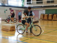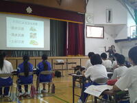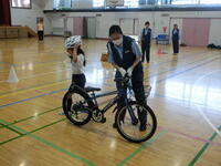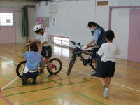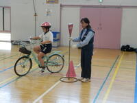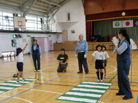 2・3校時に交通安全教室が実施されました。暑さ対策のため、空調設備のある体育館で実施しました。