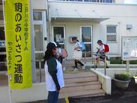今日は、早朝より「PTAあいさつ運動」が行われていました。児童・生徒に対してていねいにあいさつをしていただきました。児童・生徒も元気にあいさつをすることができました。PTA担当の方、暑い中ありがとうございました。
