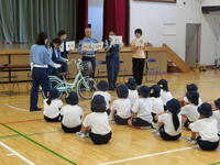横断歩道のわたり方、自転車の乗り方など、わかりやすく丁寧にご指導いただきました。自分の命は自分で守るために、交通マナーをしっかり守りましょう。交通安全指導員の皆様、本日はご指導ありがとうございました。