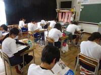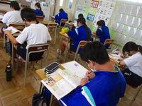 今日も暑い日となっています。熱中症警戒アラートが発令され、wBGTは31を超えています。熱中症に注意して学校生活を送っています。午前中の授業を見ると、児童生徒は真剣に取り組んでいる様子が見えます。技術の授業では、物作りの始まりで、話を真剣に聞いていました。これから、自分の作業がはじまります。ケガをしないように進めていきましょう。朝の登校時間では、児童生徒会本部役員選挙立候補者が昇降口に立って、あいさつ運動をしていました。