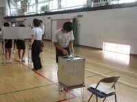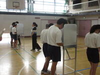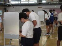 児童・生徒会本部役員選挙立会演説会が3・4校時に行われました。立候補者のみなさんは、江戸川小中学校のために力を発揮しようと公約をしっかりと説明し演説していました。朝の登校時間やお昼の放送でもアピールをしていました。当選後の活躍が楽しみです。選挙管理委員会のみなさんは、運営等をとてもよくやってくれました。投票時には、春日部市選挙管理員会より借用した投票箱と記載台を使用しました。ありがとうございました。