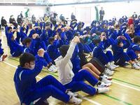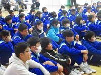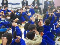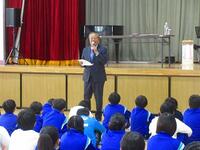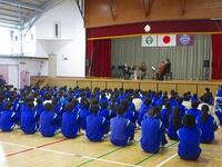 元気キャラバン・越谷アルファーズの選手が朝の登校時間に来てくれました。昇降口付近に立ち、児童と一緒にあいさつ運動をしてくれました。多くの児童が選手の周りに集まり、元気にあいさつをしてくれました。越谷アルファーズのみなさん、ありがとうございました。