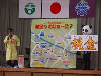 今日は、春日部法人会主催の「租税教室+NHK交響楽団による夢いっぱいコンサート」が実施されました。租税教室では、5年生から9年生を対象とした内容で、税金とは・・をわかりやすく、クイズ形式で教えてくれました。とても楽しくお話をして下さったので、児童生徒の皆さんもしっかりクイズに答えることができました。我々の生活には、税金で成り立っているものがたくさんあることがわかりました。春日部法人会の皆様、本日はありがとうございました。