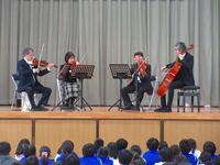 租税教室の後は、N響トップメンバーによる弦楽四重奏公演が行われました。演奏間には楽器や曲の説明など、聞く人がわかりやすいようにお話してくれました。児童生徒は、知っている曲が流れるとより盛り上がった気持ちになっていました。アンコールでは、情熱大陸を演奏していただきました。素敵な時間を過ごすことができました。NHK交響楽団の皆様ありがとうございました。