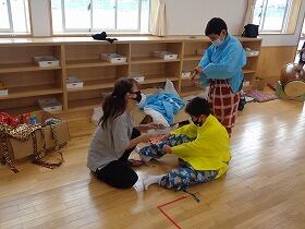 そこで、熱中症対策のため激しい動きは控えて、場所や動きの確認を中心とした練習にしました。また、20分間で外での練習を切り上げました。