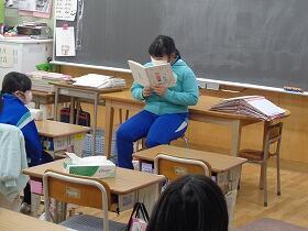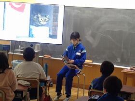 本日、5・6年生が1~4年生の教室に行き、絵本の読み聞かせを行いました。1年生には、「おたんじょうびね、ムーミントロール」、2年生には、「ぶつくさモンクターレさん」、3年生には、「なまえのないねこ」、4年生には、「ねこのなまえ」を読みました。1~4年生のみなさんも、とても楽しそうに話を聞いていました。5・6年の図書委員の皆さん、ありがとうございました。