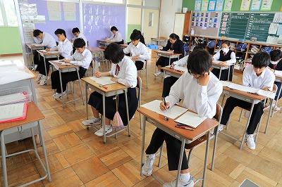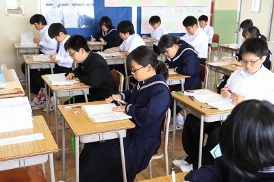 中間テストは5年生~9年生が受験します。写真は5時間目の様子。7年生から9年生は英語のテスト、5・6年生は4教科受験なので通常授業でした。6年生は2時間目の社会科のテストが返されて、やり直しをしていました。