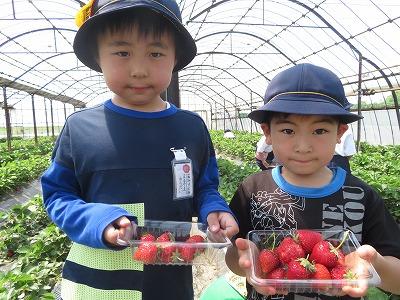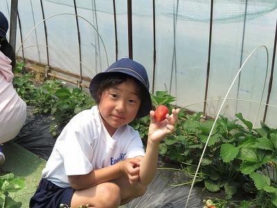 本校近くの齋藤農園で、1・2年生がいちご狩りを行いました。授業は生活科。