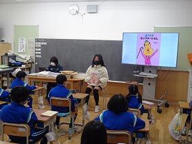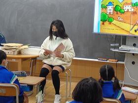 本日、5・6年生が1~4年生の教室に行き、絵本の読み聞かせを行いました。1年生には、「おたんじょうびね、ムーミントロール」、2年生には、「ぶつくさモンクターレさん」、3年生には、「なまえのないねこ」、4年生には、「ねこのなまえ」を読みました。1~4年生のみなさんも、とても楽しそうに話を聞いていました。5・6年の図書委員の皆さん、ありがとうございました。