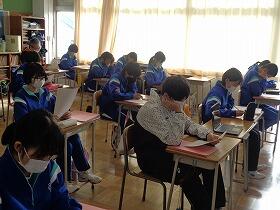 本日の3時間目には、7・8年生はスキー教室についての日程の確認や役割分担等を行いました。スキー教室に向けて、着実に準備が進んでいます。また、9年生は進路について、担任の先生との二者面談を行いました。あと1か月後には私立高校の入試も始まります。健康に気を付けて、一日一日を大切に、勉強を進めていってほしいと思います。