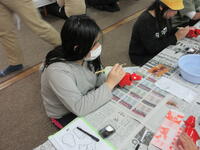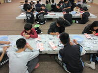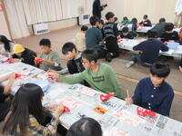 先週から「書きぞめ」の練習が始まりました。1,2年生はペン字、3年生以上は毛筆です。日頃書写の時間は机上に半紙や硯、見本を置いて書きますが、「書きぞめ」は多目的室で行っています。お手本を見ながら大きく伸びやかな作品ができるよう練習中です。