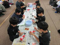 1,2時間目、特別教室棟で5年生が学習をしていました。1組は理科。電流の学習です。2組は家庭科。ミシンを使ってエプロンづくりです。手を動かし、頭を働かせ、時には友だちと相談をしながら、学習をすすめていました。