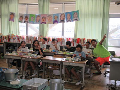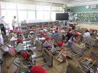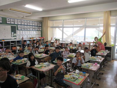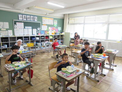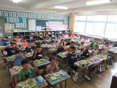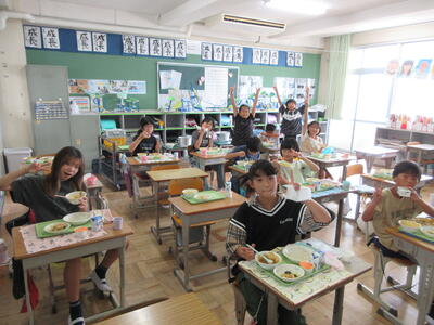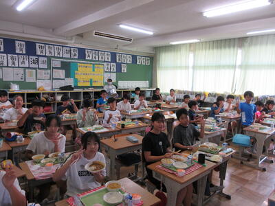 どの教室でもモグモグおいしそうに食べる様子が見られました。牛乳も冷えてておいしいです。
