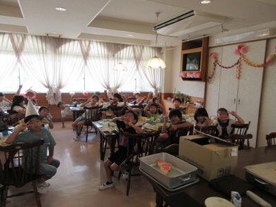 本日、1学期最後の給食でした。メニューはみんなが大好きなカレーライス。そして、デザートは自分で選べるセレクトデザートでした。みんな笑顔で最後の給食をいただきました。2年生はアルカサールで7月のお誕生日会を兼ねて最後の時間を楽しんでいました。栄養士さん・調理員の皆様、おいしい給食をありがとうございました。2学期も楽しみにしています!