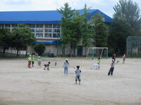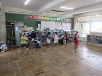 今日は一日中雨模様でしたが、業間休みと昼休みに校庭で外遊びができました。2学期が始まって以来、暑い日が続いていて休み時間も室内で過ごすことが多かったので、「今日は外に出て遊べます。業間鬼ごっこもやります。」と放送が入ると、校内から歓声があがりました。大喜びで走って出てくる子が多かったです。