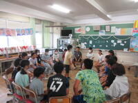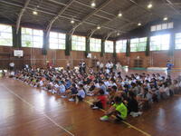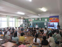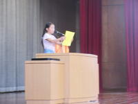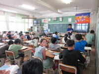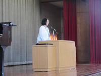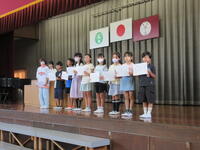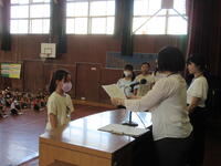 7月18日は1学期の終業式です。全校が体育館に集まり、1学期の振り返りと夏休み注意することの確認をしました。式の中で、4年生代表児童が、1学期がんばったことと、2学期に取り組む課題を、はっきりと全校児童の前で話してくれました。最後にクラスの手本となった児童を表彰する「ひまわり賞」が発表されました。