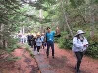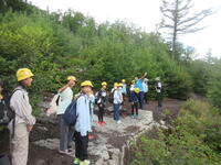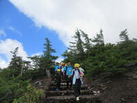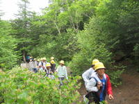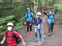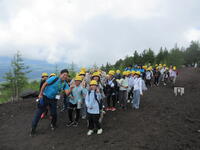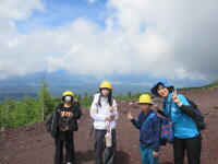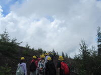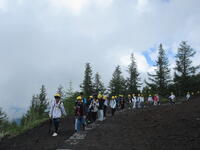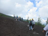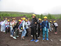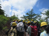 5年生林間学校1日目。5合目のレストラン「見晴らし」で少し辛い噴火カレーを食べた後、富士山五合目のお中道をハイキングしました。時々もの切れ間から見える富士山頂を見上げたり、眼下の樹海や河口湖を眺めたりしながら、標高2300m、気温20度ほどのコースをハイキングしました。