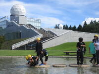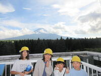 かつて富士山頂にあった富士山測候所のレーダードームを移設してできたレーダードーム館では、天気の変化や台風などの災害などについて学習しました。富士山頂の3月のブリザードを体験できる施設では、-20℃の強風を受けながら、震える子、微動だにしない子、寒くて踊りだす子、さまざまな反応がありました。施設の3階からは、美しい稜線を現した富士山を見ることができました。