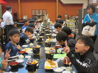 林間学校2日目も青空にめぐまれました。子どもたちはそれぞれの部屋でゆっくり過ごしあたと、おかずいっぱいの朝食を食べました。いただきますやごちそうさまのあいさつをする児童は、それぞれ自分の気持ちを添えて気持ちの良い挨拶をしてくれました。また、数日前に誕生日を迎えた児童に、全員で誕生日の歌を歌うサプライズもありました。