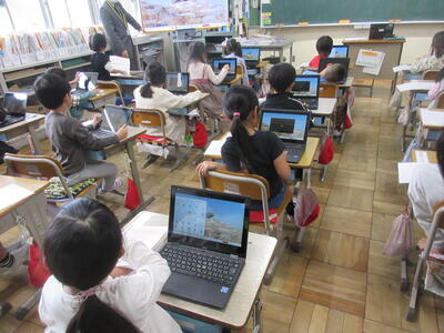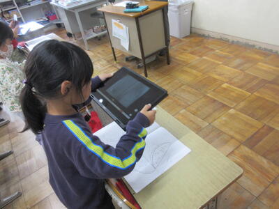 1年生は一人一台端末を使って写真撮影の練習です。写真撮影の方法、撮影した写真の確認方法などと一緒に、他の人のことは許可なく勝手に撮影してはいけないなど、マナーやルールについても学びました。