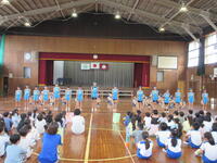 今日の朝は音楽朝会でした。今月の発表学年は6年生。曲名は「ペガサス」です。最高学年らしい素敵な歌声を体育館いっぱいに響かせてくれました。最後は今月の歌「友達賛歌」を全校児童で明るく元気に歌いました。
