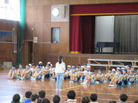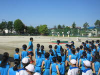 いよいよ5日(木)は正善小学校で陸上大会が開かれます。そこで今日は、4年生を中心とした応援団が出場選手にエールを送り、選手たちからも大会に向けた意気込みを聞くことができました。