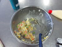 5年生がゆで野菜サラダをつくりました。