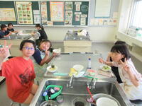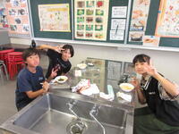 今日は5年2組がゆで野菜サラダを作っていました。みんなで分担・協力しながら作業を進め、サラダを完成させることができました。食べてみると「めっちゃおいしい」と満面の笑顔。ぜひ、お家でも作ってみてくださいね。5年1組は今週の金曜日に予定しています。