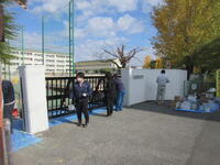春日部市役所の職員の方々が研修の一環として校門をきれいにしてくださいました。塗装のはげかかった校門は漆黒の深みのある門になりました。白いコンクリート部分も塗装してくださり見違えるようになりました。作業している職員の方々も「ペンキ塗りは意外と楽しい。」と言いながら作業に取り組んでくれていました。持久走大会で来校の際、ぜひ美しくなった校門をご覧ください。